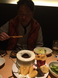 社長はチョコフォンデュなんていいよ、とビール片手に焼き鳥を食べていましたが・・・